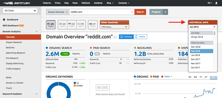 The built-in features are designed to help both rookies and experts boost their search engine rankings. You can even get information about your competitors’ keywords, find new competitors in the segment, pull out information about your competitor’s backlinks, draw a comparison for your domain with competitors, keep track of how their rankings fluctuate and conduct a full competitive analysis.