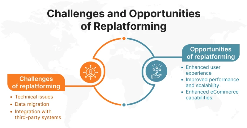 Data Migration: Data migration is a critical aspect of replatforming, and it can result in data loss or corruption if not executed correctly. Maintaining data integrity during the transition is essential, and ensuring that the data is accurate, secure, and available.