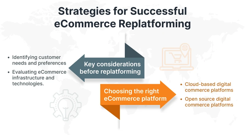 Replatforming eCommerce can be a challenging and complex process, and careful planning and consideration are necessary to ensure success. An excellent replatforming example is the migration of Etsy from its original platform to Google Cloud. This move allowed Etsy to scale more effectively, reduce infrastructure costs, and improve site performance.