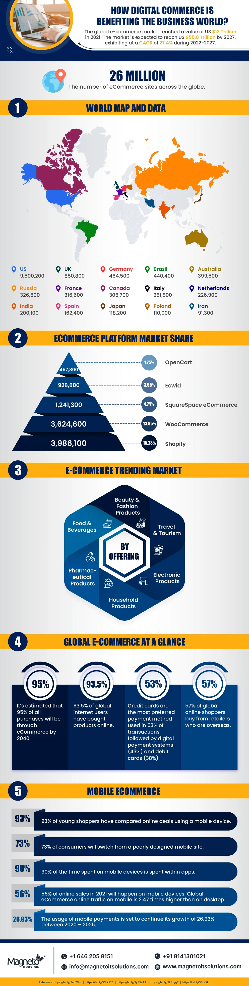 There are 26 million eCommerce sites across the globe, and the global e-commerce market reached a value of US$ 13 Trillion in 2021. Furthermore, the market is expected to reach US$ 55.6 Trillion by 2027, exhibiting at a CAGR of 27.4% during 2022-2027.