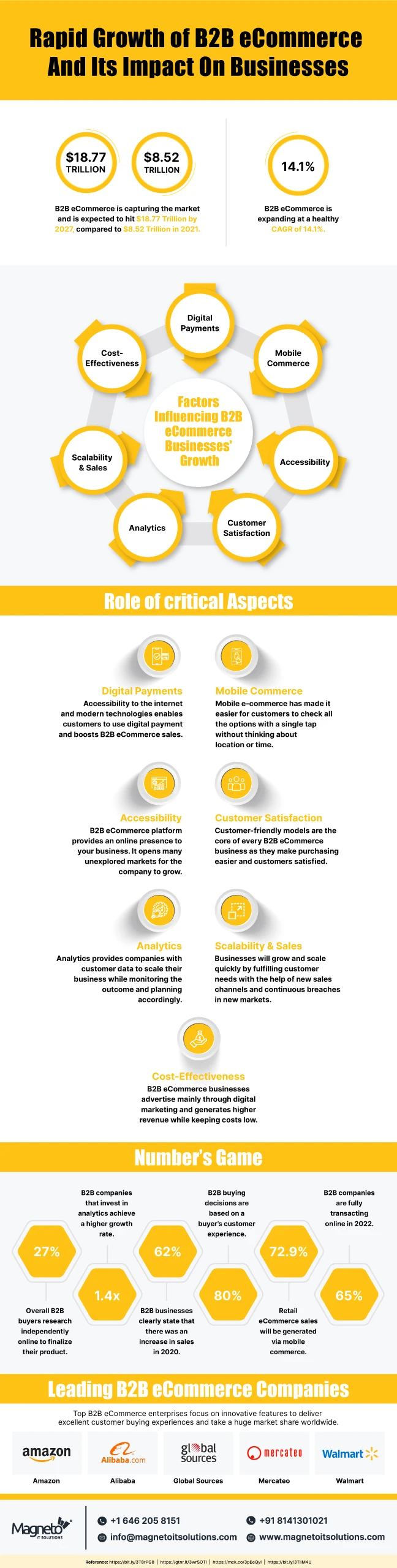 There are several reasons for people to choose eCommerce as an option for their B2B businesses, as they see a clear roadmap with effective results and a big market that is exponentially growing. Some of the significant factors are mentioned below to give you a clear understanding of why B2B eCommerce solutions are impacting businesses: