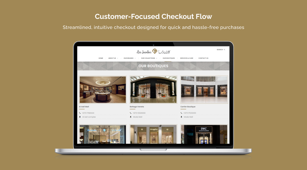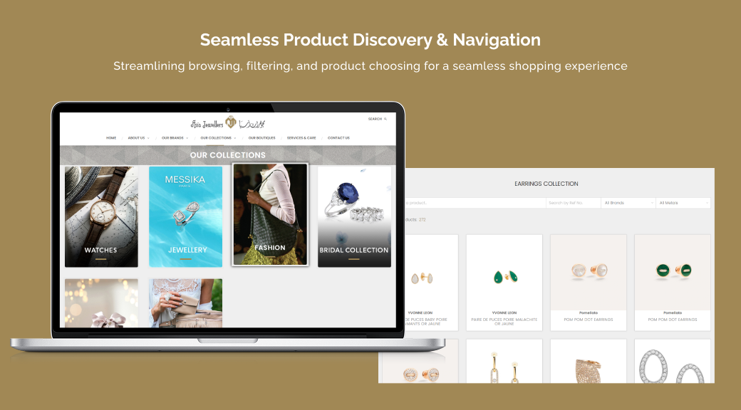 Magneto made every visual aspect, from typography to color schemes, mirror Asia Jewellers’ luxury brand, so the site had a uniform and premium aesthetic.